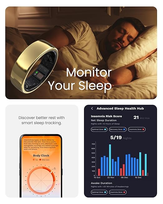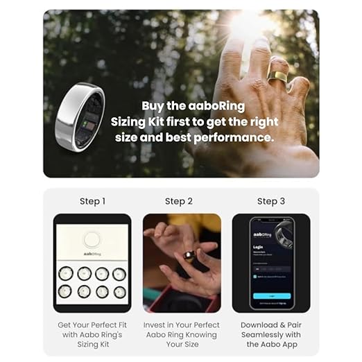 • TAILORED GUIDANCE & TIMELY ALERTS: Access personalized insights through the aabo Ring mobile app with daily, weekly, and monthly overviews. Receive proactive notifications and reminders based on your events and goals, ensuring timely prompts for essential tasks such as hydration, nutrition, and sleep preparation.