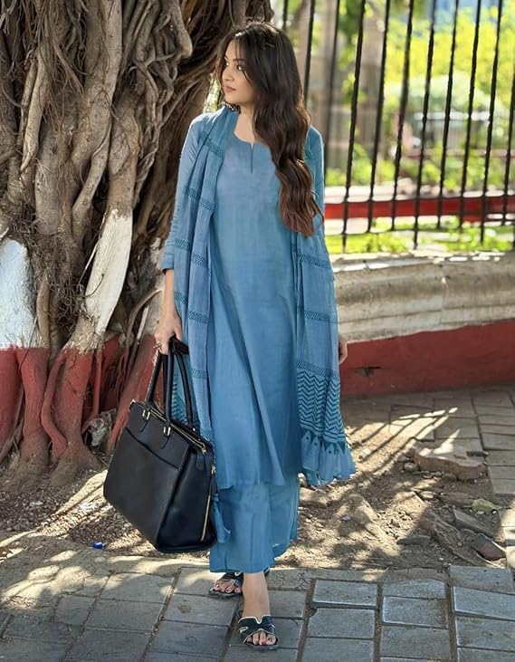 • Kurta Set Fabric: Rayon Blend (Rayon 90% Cotton 10%) || Kurta Set Color :- Light Blue