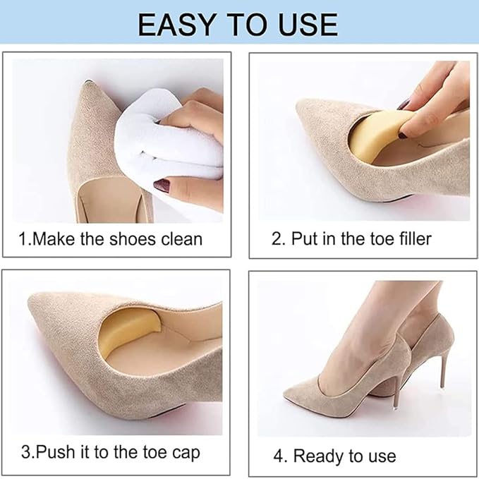 • 【Package Includes】Package comes with 2 pairs of foam toe filler is applied to fill the toe tip of high-heeled shoes. Including black and beige .Foot pads for shoes can meet your daily shoes use, you can also share them with others, such as classmates,colleagues, coworkers, neighbors and more .