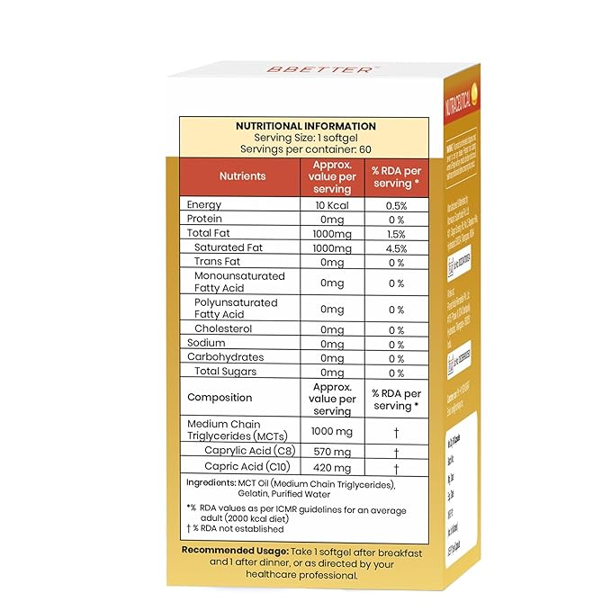 BBETTER MCT Oil Softgels | 1000mg Per Serving With Capric Acid & Caprylic Acid | Helps Support Energy, Metabolism & Brain Function | Supports Gut Health | Keto & Paleo Friendly | 60 Softgels