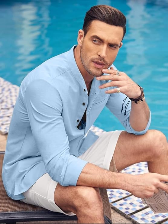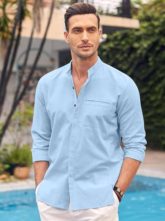 Expertly Tailored: Exceptional fabrics and expertly tailored fits are important touches of this beach shirts. Unique texture fabric is distinctive and adds to a casual look. Relaxed cuban collar, long sleeve, chest pocket, button cuffs, straight hem add personality to your looks.