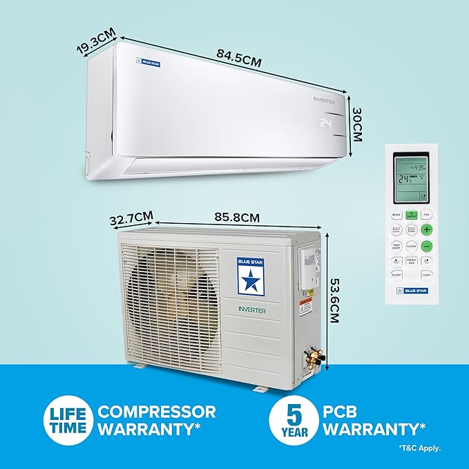 Blue Star 1.5 Ton 3 Star, Inverter Split AC (Copper, 5 in 1 Convertible, Turbo Cool, Energy Saver, Blue Fins, ID318YKU, White)