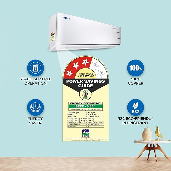 • Energy Rating : 3 Star | Annual Energy Consumption: 1006.84 Units Per Year| ISEER Value: 3.85 (The star rating is as per new BEE guidelines)
