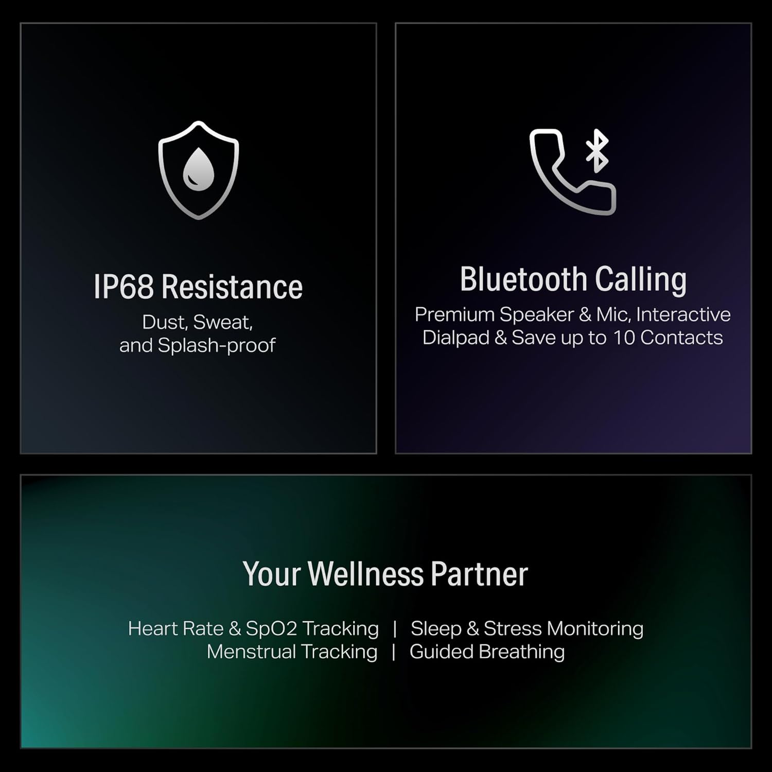 • Bluetooth Calling: Add up to 10 contacts with the boAt Crest app and use Bluetooth calling to contact them directly from the watch. You can even dial any phone number with the handy dial pad.