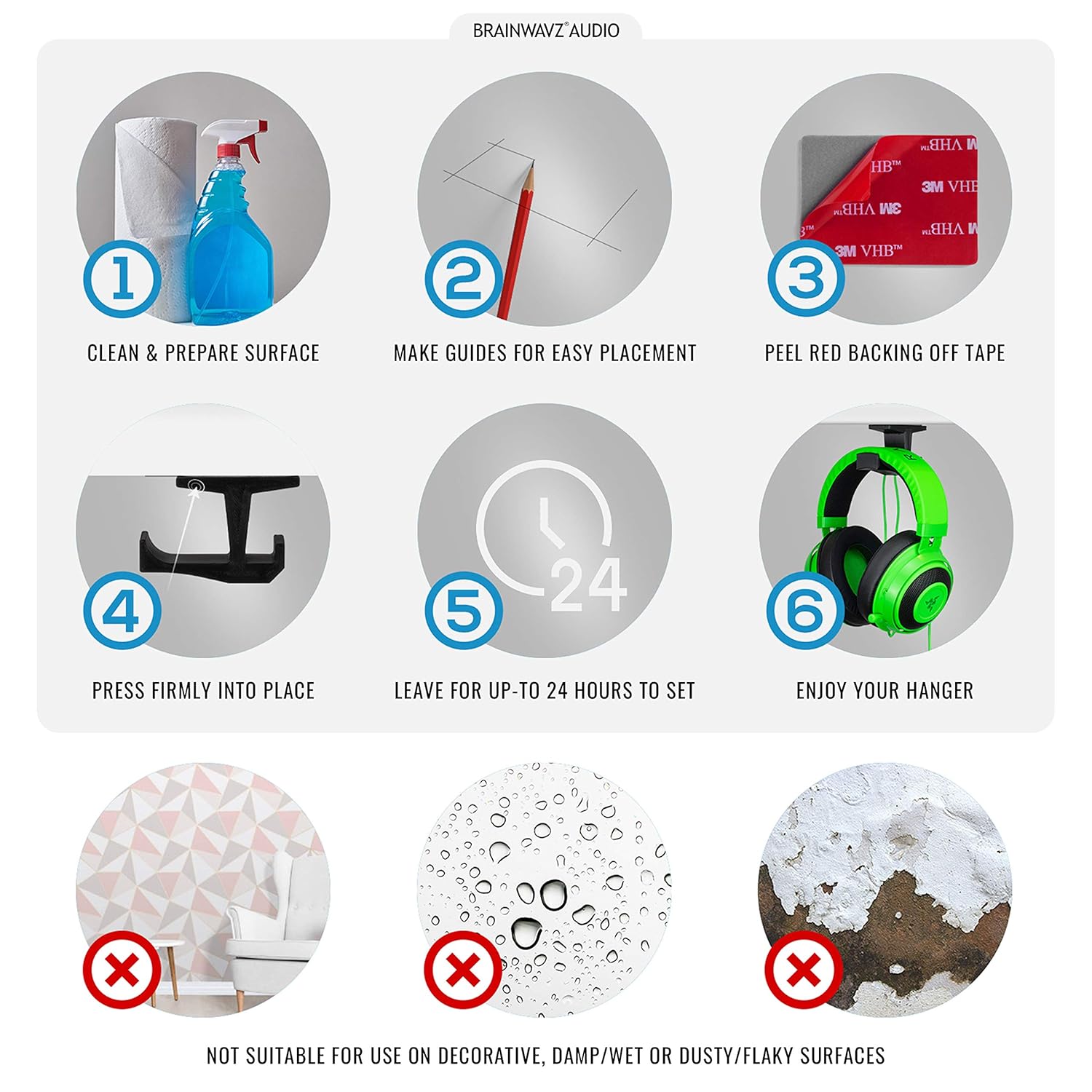 • STURDY & STRONG: Made with high grade plastic and utilizing 3M VHB tape, the headphone stand can hold even the heaviest of headphones with ease (max total weight should be less than 2kg).
