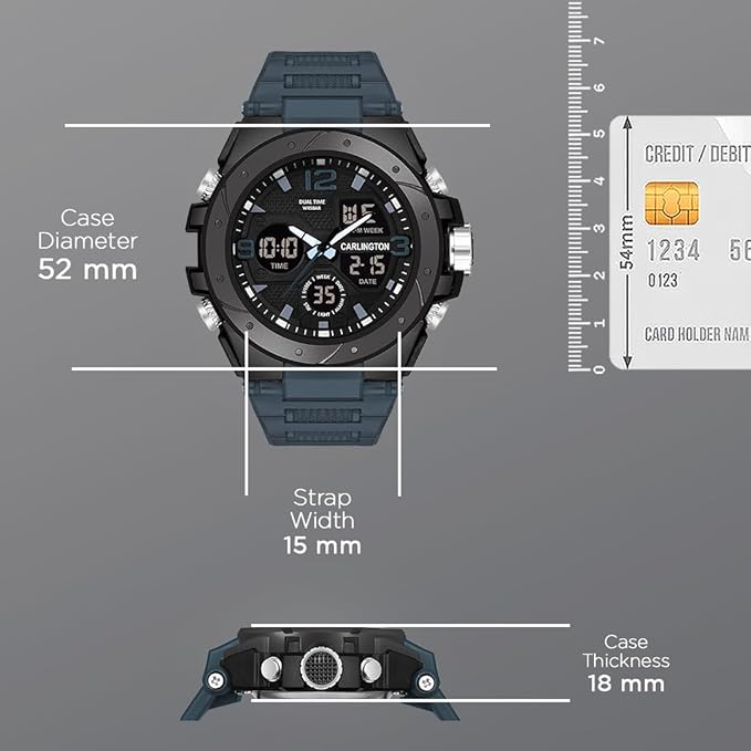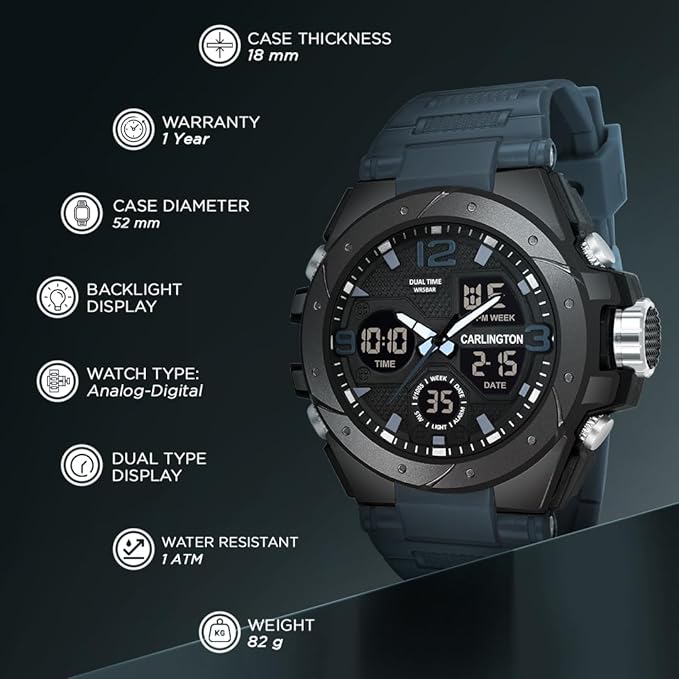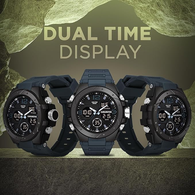 Carlington Endurance Series Analog-Digital Sports Watches for Men and Boys with Alarm, Stopwatch, Backlit Display, Dualtime, Silicone Rubber Strap, Water Shock Resiatant - CT_9105