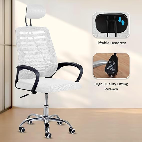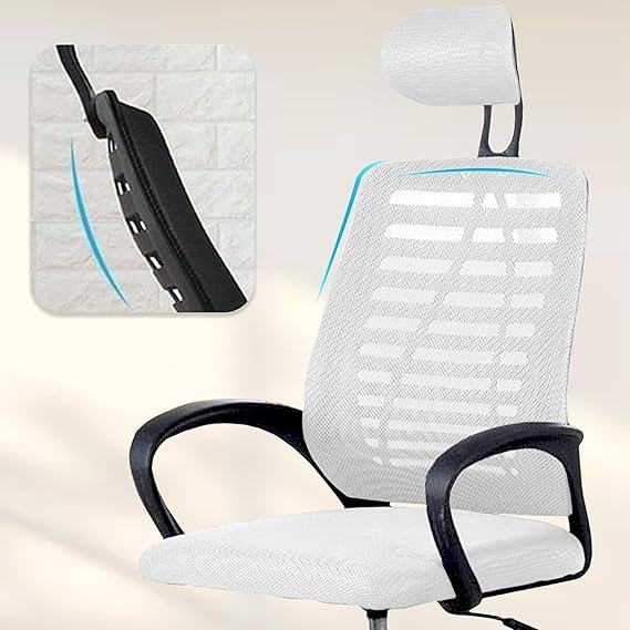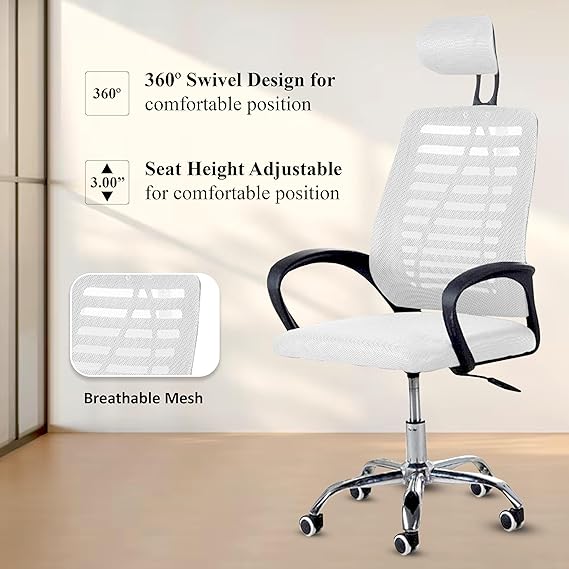 Casa Copenhagen,Mesh Office Desk Chair,Rocking Ergonomic Computer Chair Adjustable High with Headrest and Comfortable Armrest Swivel- Jet Grey & White Handle
