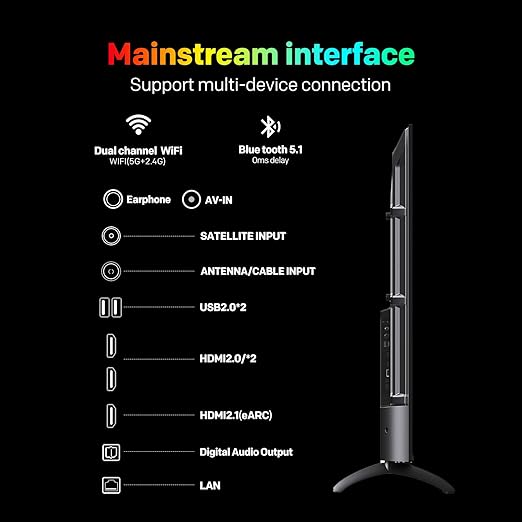 • Supported Apps : Prime Video, Netflix, Zee5, Sony LIV and more | Cromecast, Google voice assistant & Dual band Wi-Fi | Display Mirroring for compatible devices.
