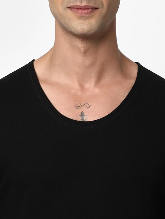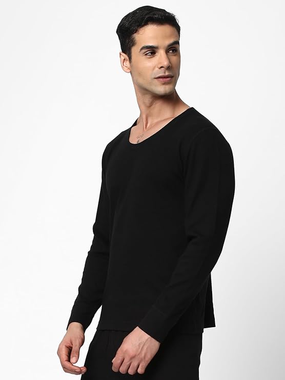 Cotstyle Black Cotton, Viscose and Polyester Super Combed Cotton Rich Fabric Men Thermal Top Innerwear