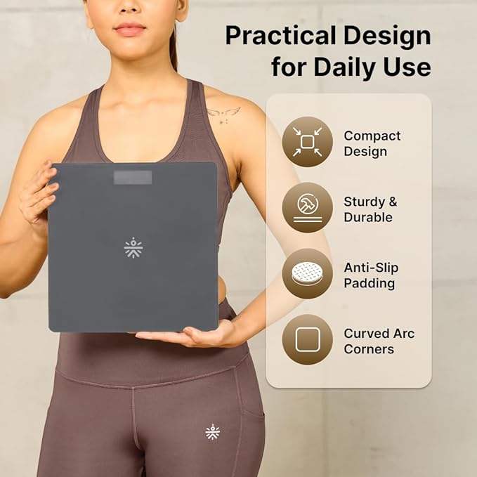• STYLISH, USER-FRIENDLY DESIGN: Featuring a sleek, modern design, this scale includes a large, easy-to-read LCD display with automatic On/Off functionality and low battery indicators.