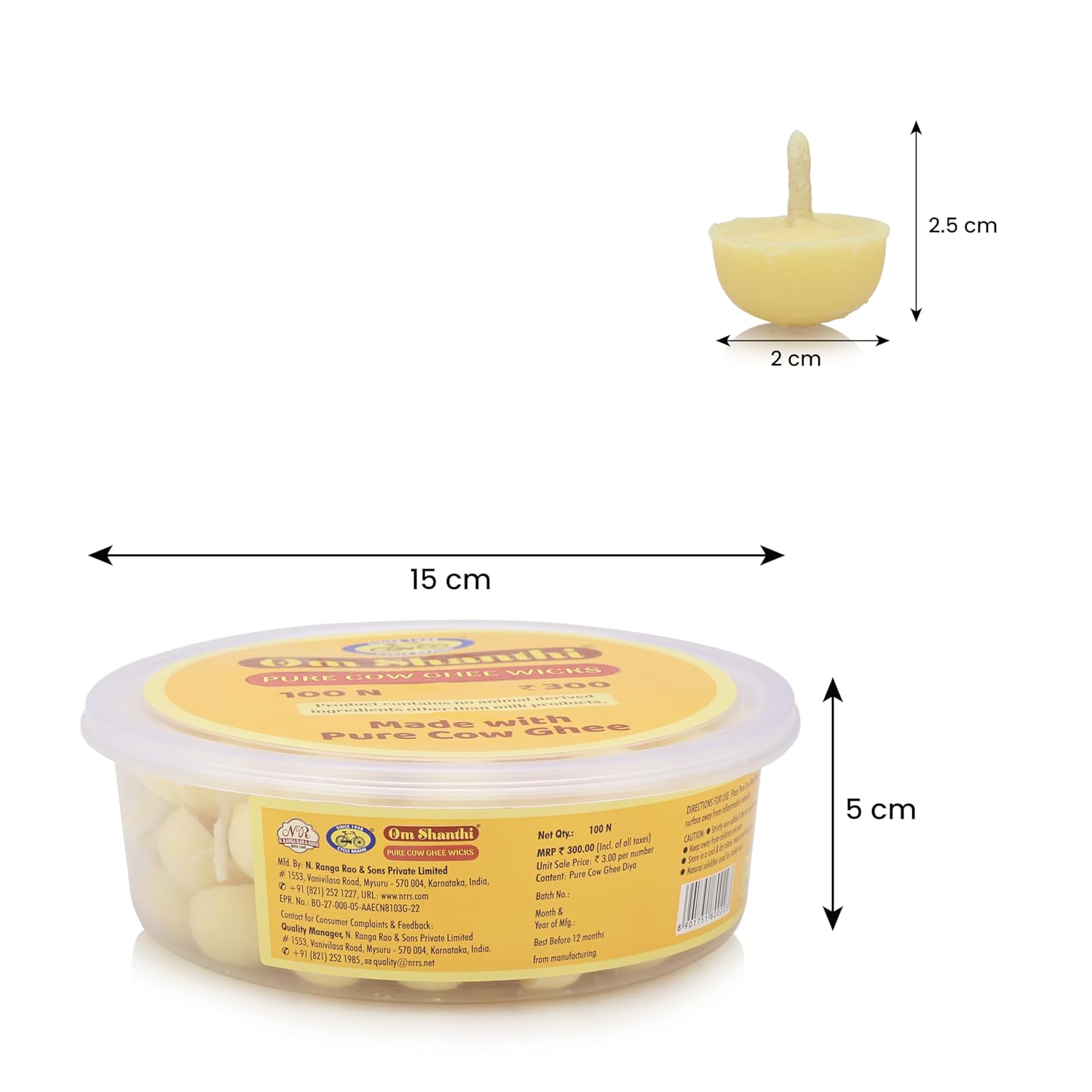 • Pure Cow Ghee: Made for religious and spiritual use - wax-free, vegetarian, and safe.