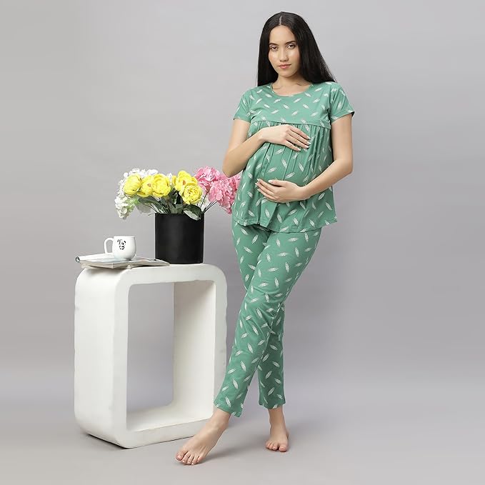 ✔ Stylish & Comfortable Design – The round neckline and short sleeves give a trendy yet cozy look. The T-shirt & Pajama style ensures a perfect fit while providing enough room for your growing baby bump, making it ideal for pregnancy, postpartum, and nursing.