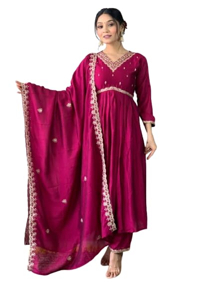 • SET INCLUDES: Three-piece set comprising a beautifully embroidered kurta, matching sharara pants with detailed border work, and a coordinating dupatta