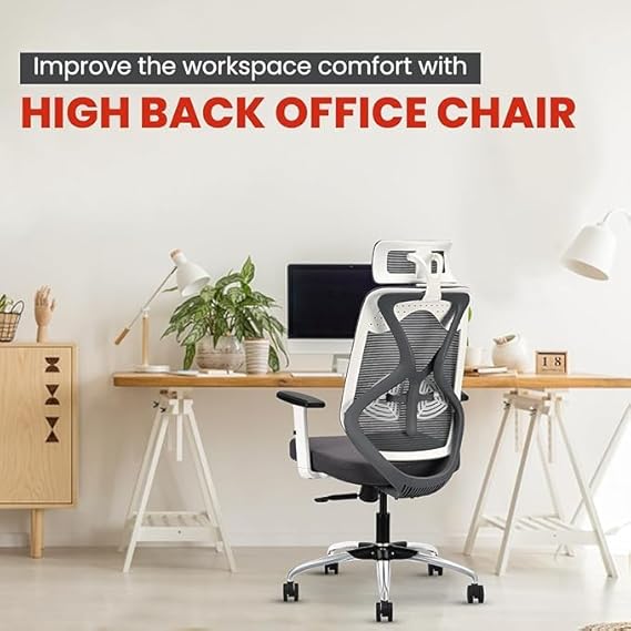 • Ergonomic High-Back Design: Features a 2D adjustable headrest, lumbar support, and adjustable arms for personalized comfort and posture support.
