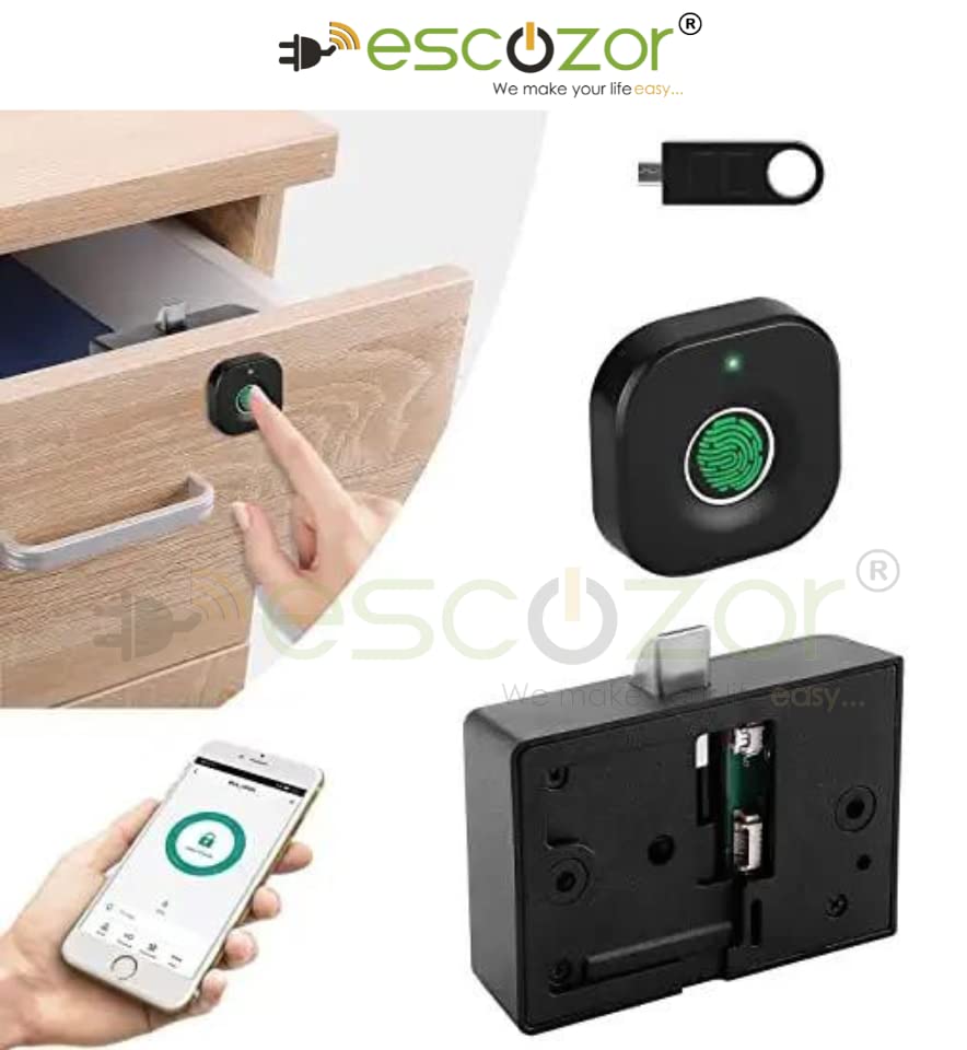 Escozor® Smart Furniture Digital Keyless Lock for Home (Fingerprint Lock with Mobile App Control), Polished Finish (Black)