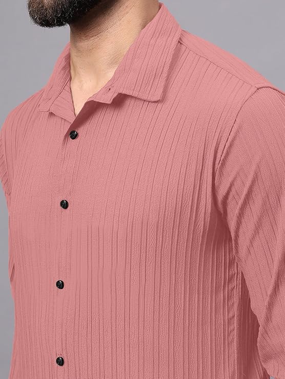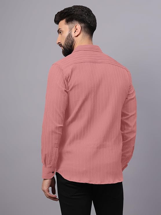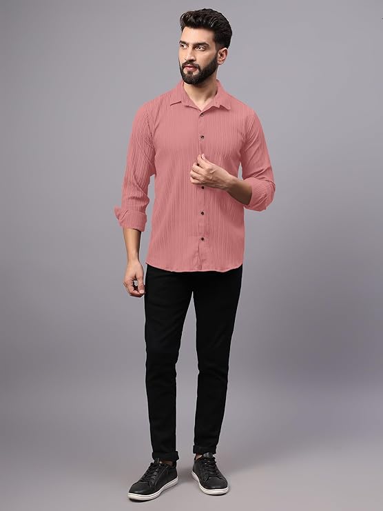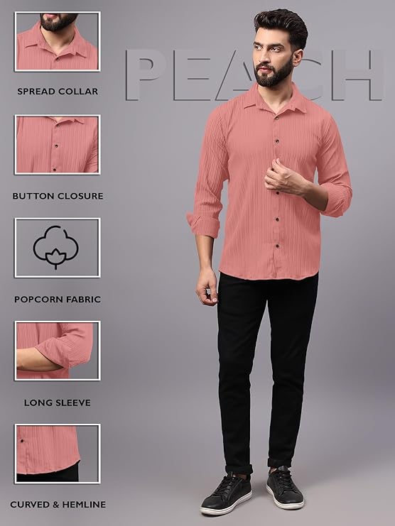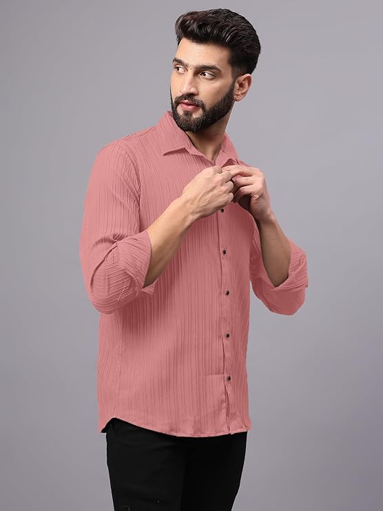 FINIVO FASHION Men's Casual Button Down Shirts Long Sleeve Linen Shirt Fashion Textured Beach Summer Shirts