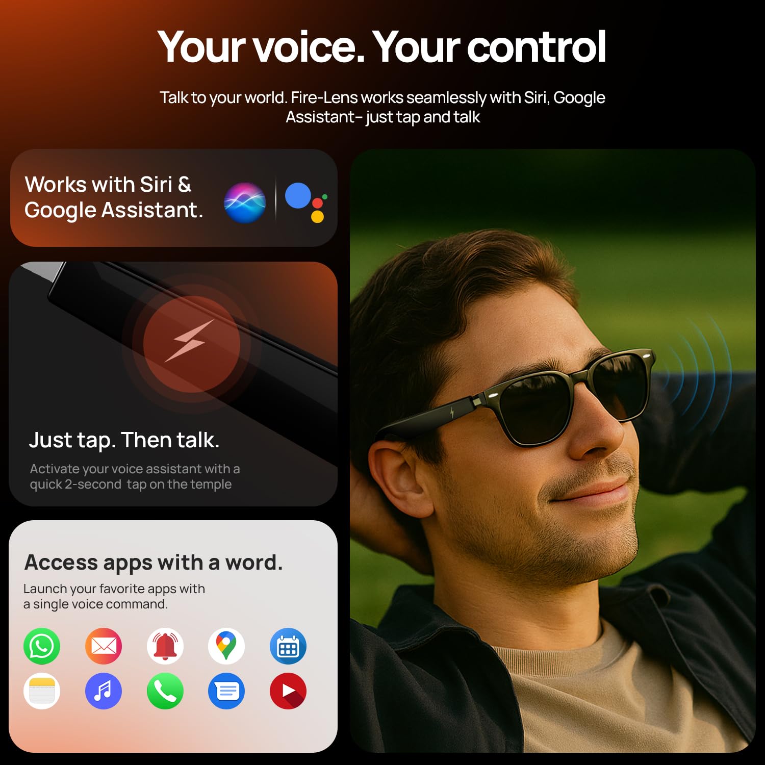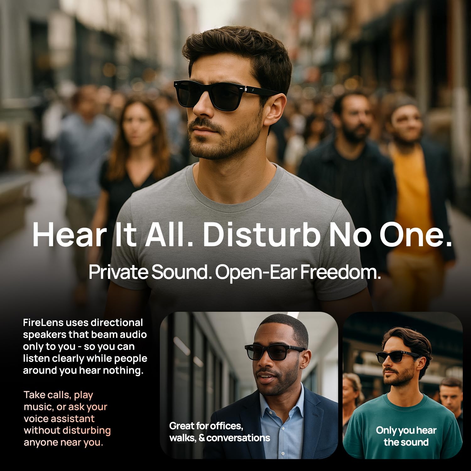 • Optical Lens Support + True Wireless Freedom - Customize your Fire-Lens Dune Smart Glasses with prescription lenses for all-day wear. Ditch bulky earbuds enjoy wireless freedom with a single fashionable accessory that delivers style, comfort, and smart functionality wherever you go.