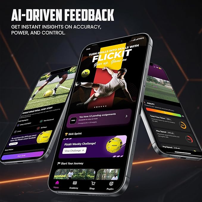 • Smart Training Integration: Connects with the Flickit app to track performance, monitor drills, and get personalized feedback