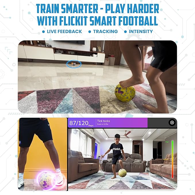 FLICKIT Smart Football Size 5 – AI-Powered Training Ball for Teens Adults (Ages 13+) | Durable Grained PU | Precision Stitching | App-Enabled Drill Tracking | Indoor Outdoor Grass Turf Use
