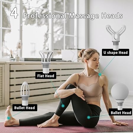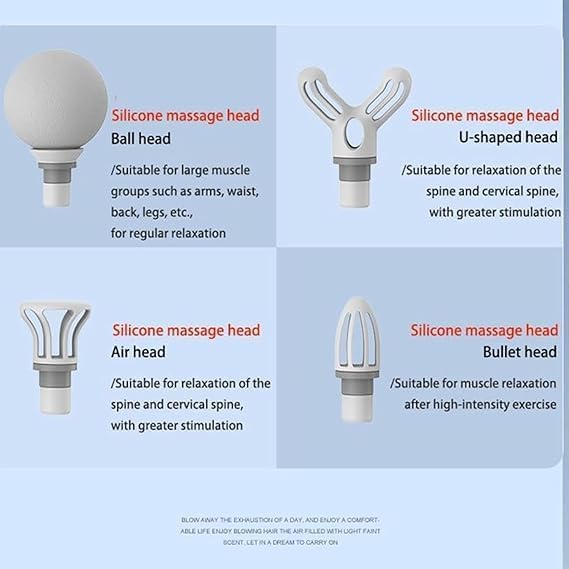 • 𝟒 𝐕𝐞𝐫𝐬𝐚𝐭𝐢𝐥𝐞 𝐌𝐚𝐬𝐬𝐚𝐠𝐞 𝐇𝐞𝐚𝐝𝐬: Our gun massager includes 4 detachable heads that ensure each pain point in the body is covered with the most appropriate contact. This massage machine features a Tip Head for all body parts, Small Flat Head for joints, U-Head for the spine, and Ball Head for large muscles.