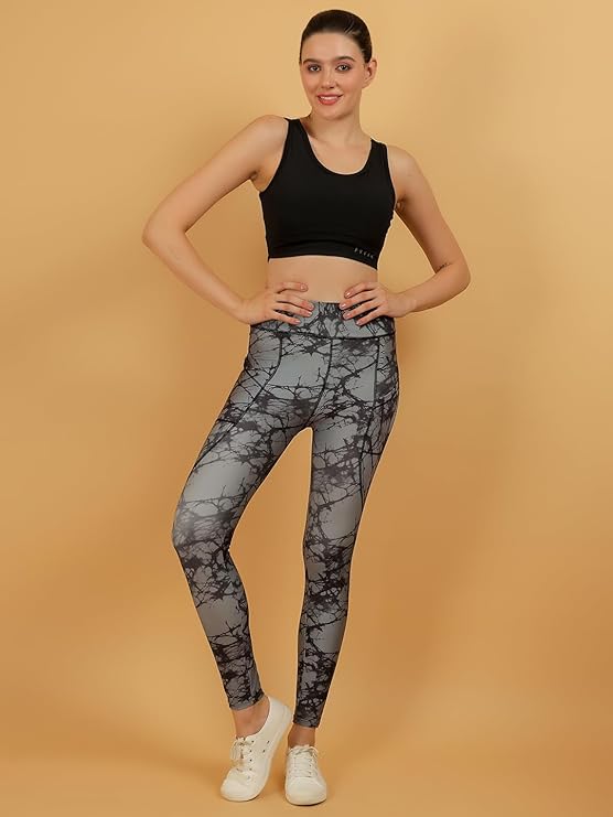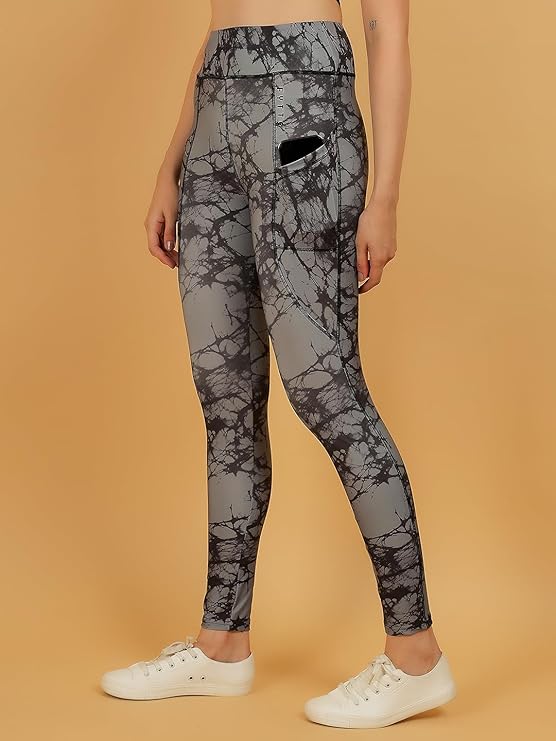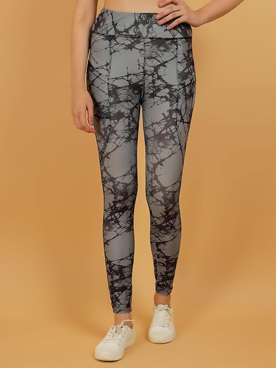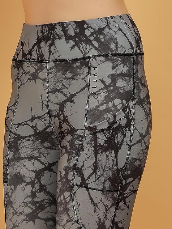 FYTTE Women Dry Fit Tie Dye Printed Leggings – Athletic Sports Tights for Workout & Activewear, Blue Tie Dye