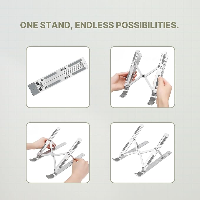 • Anti-Slip Silicon Grip for Device Safety: The base and device rests are equipped with silicone rubber pads to keep your laptop stable, scratch-free, and firmly in place, even during typing or touchpad usage.