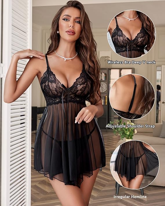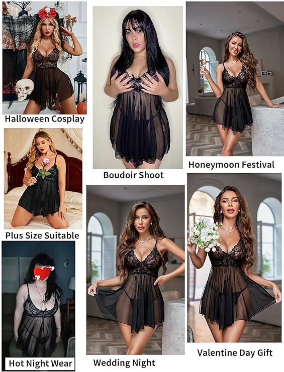 Ocassion: Love with desire in this Lovely lace babydoll set. Perfect for Special Night, Bachelorette Party, Wedding night, Honeymoon Gifts, Bridal Shower, Lingerie Party, It will make you more elegant and stunning.