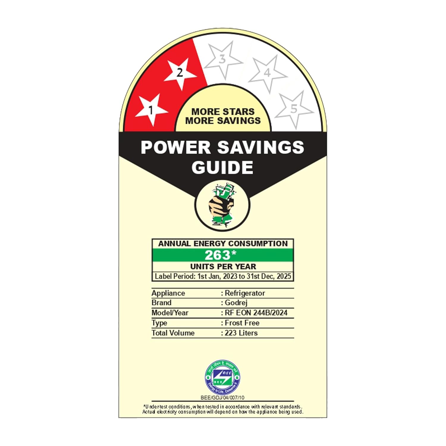 • Energy Efficiency: 2 Star : Energy Efficiency (Please refer energy label on product page or contact brand for more details), Annual energy consumption 263 units per year