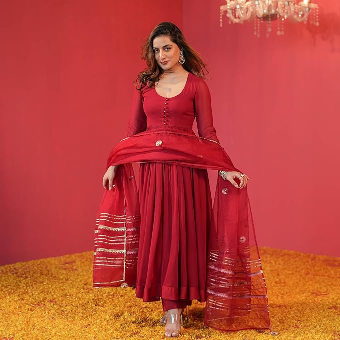 • Style: Anarkali || Length: Calf Length || Sleeves: 3/4 Sleeves || Size Chart- Kurta-S-36 in, M-38 in , L-40 in , XL-42 in , XXL-44 in,Pant :- S-28 in, M-30 in , L-32 in, XL- 34 in , XXL- 36 in,For More Please refer to the size Chart below.