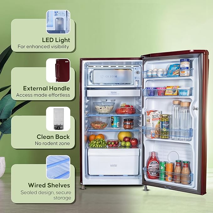 Haier 165L 1 Star Direct Cool Single Door Refrigerator | Wired Shelves | Large Veg Box | Fast Ice Making | Longer Cooling Retention | Easy Clean Back (HED-171RS-P, Red Mono)