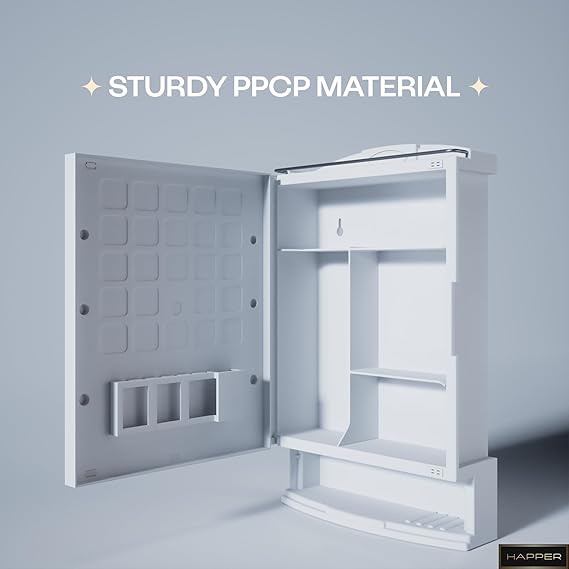 Happer Plastic Premium Multipurpose Wall Mounted Storage Cabinet with Mirror, Prime Look (White)