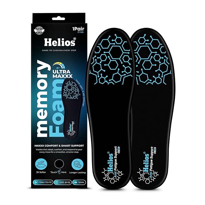 Helios® Memory Foam Ultra Max Insoles for Men | Trim to Fit Size 8-13 | Insole for shoes |Orthotic Shoe Inserts for Cushioning, Arch Support Insole All-Day Comfort (Black, 8 to 13 )