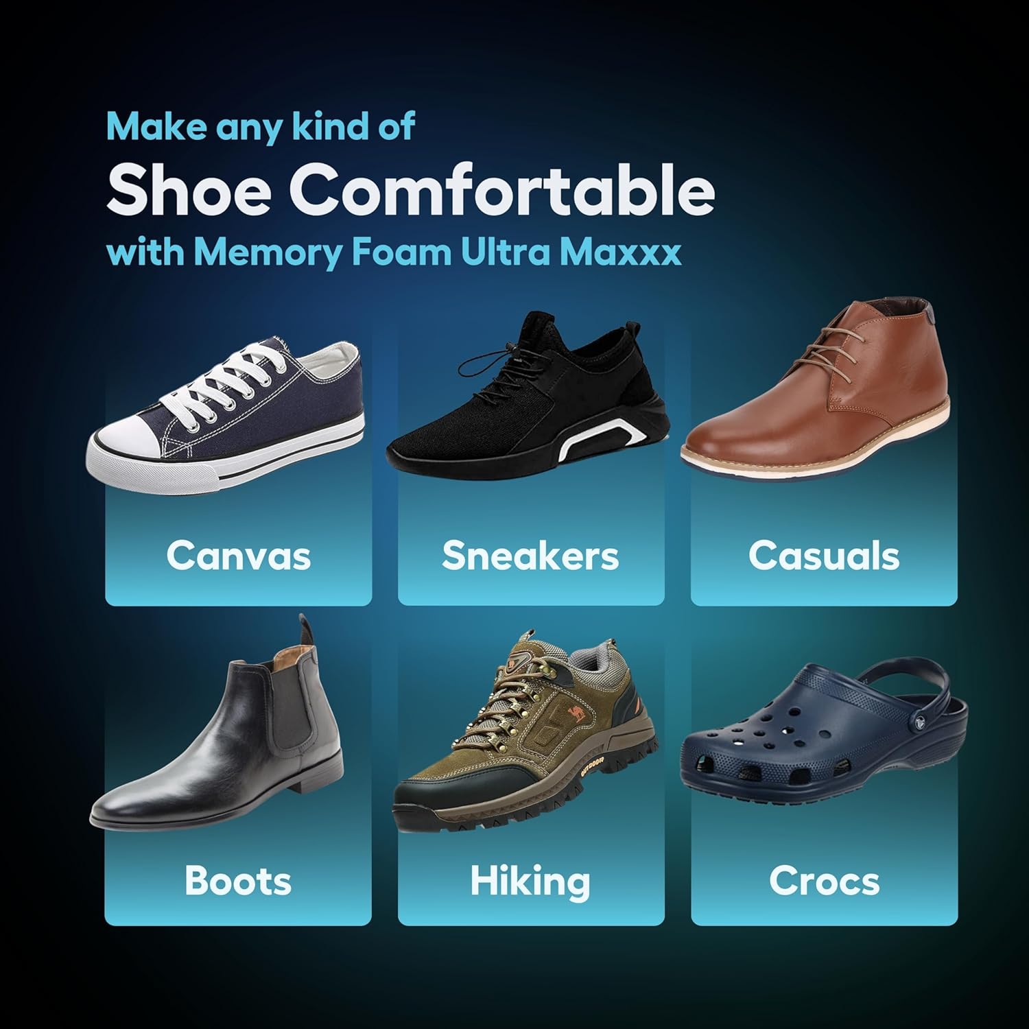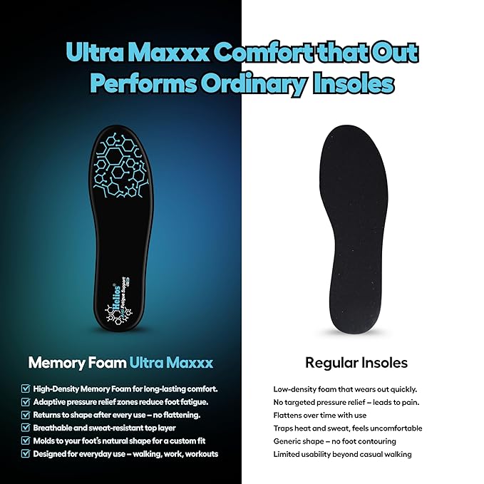 • ✅ Memory Foam Comfort: : Memory foam insoles for men with ultra-max cushioning technology provide superior comfort and support for extended wear throughout the day