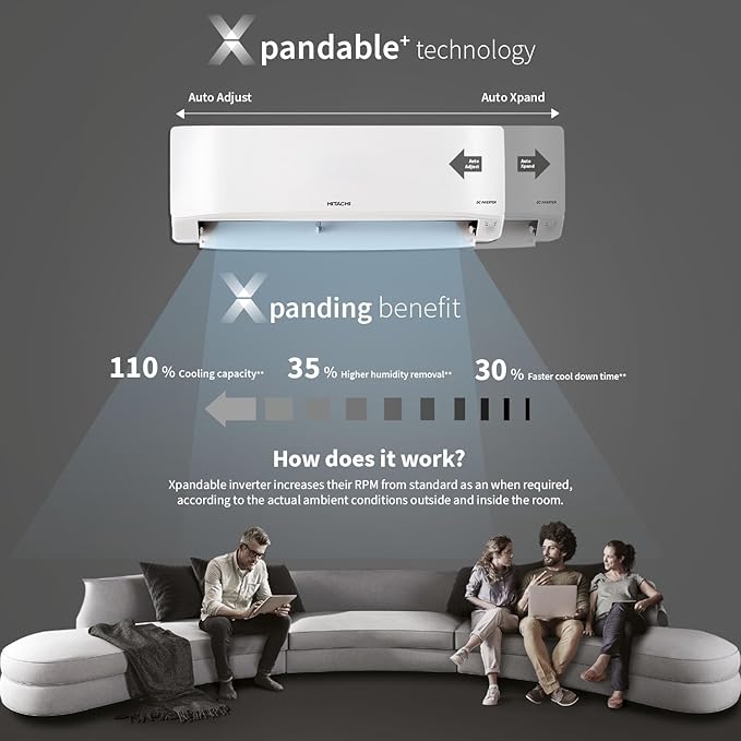 Hitachi 1.5 Ton Class 3 Star Xpandable+ Inverter Split AC (100% Copper, 4-Way Swing, ice Clean, Dust Filter, 3400SXL RAS.D318PCCIBS, White)