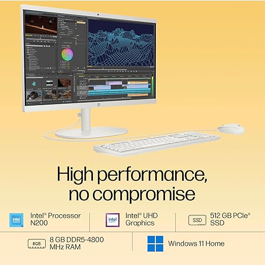 HP All-in-One, Intel N200,21.45'' (54.5 cm), FHD, 8GB DDR5, 512GB SSD, Intel UHD Graphics, 720P HD Camera W/Privacy Shutter, Dual Speakers (Win11, White, 4.17 Kg) Dg0154in