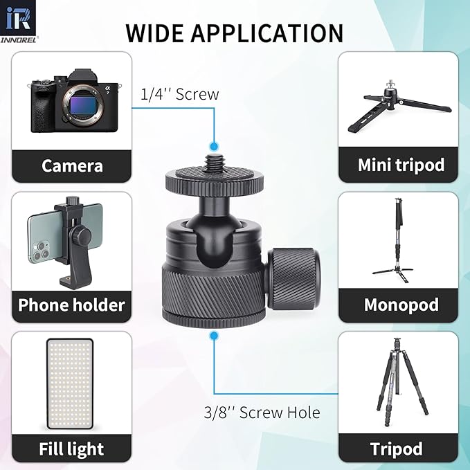 Innorel Mini Ball Head- C19 Mount Tripod Head-Cnc Metal Low Profile Ballhead 360° Pan 90° Tilt Tripods Mount With 3 8 To 1 4 Adapter Ballheads, Max Load 6.61 Lb 3Kg For Phone Dlsr Camera Mini