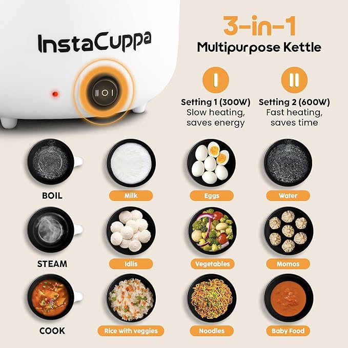 ⏱️ Time-Saving Power: With 600 Watts of power, the electric kettle cum cooker heats up rapidly, allowing you to prepare delicious meals quickly and giving you more time to focus on other important tasks