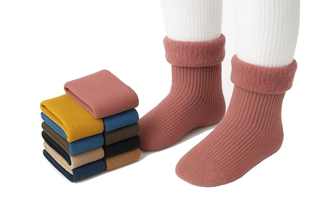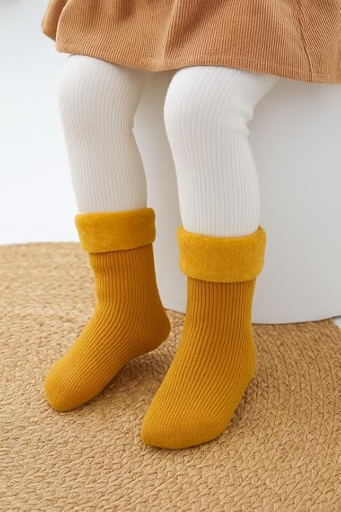 • Warm & Insulating: Fleece-lined thermal socks provide excellent heat insulation, keeping kids’ feet warm and cozy in cold winter weather.