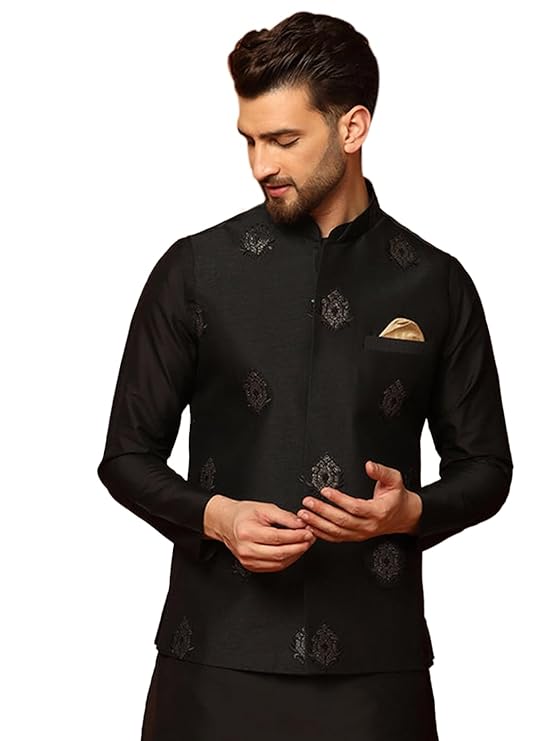 • ELEGANT FIT – The sleeveless Modi jacket design with a mandarin collar and embroidered detailing gives you a refined silhouette, perfect for ethnic, Indo-western, or office party looks.