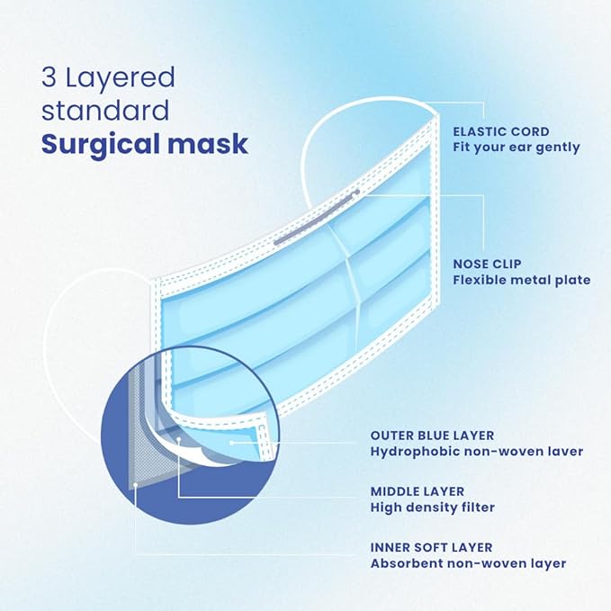 • 3-Ply Protection with Soft Breathable Fabric : Made with 3 layers of premium non-woven fabric, this surgical mask ensures maximum protection with easy breathing, making it comfortable for long hours of wear.