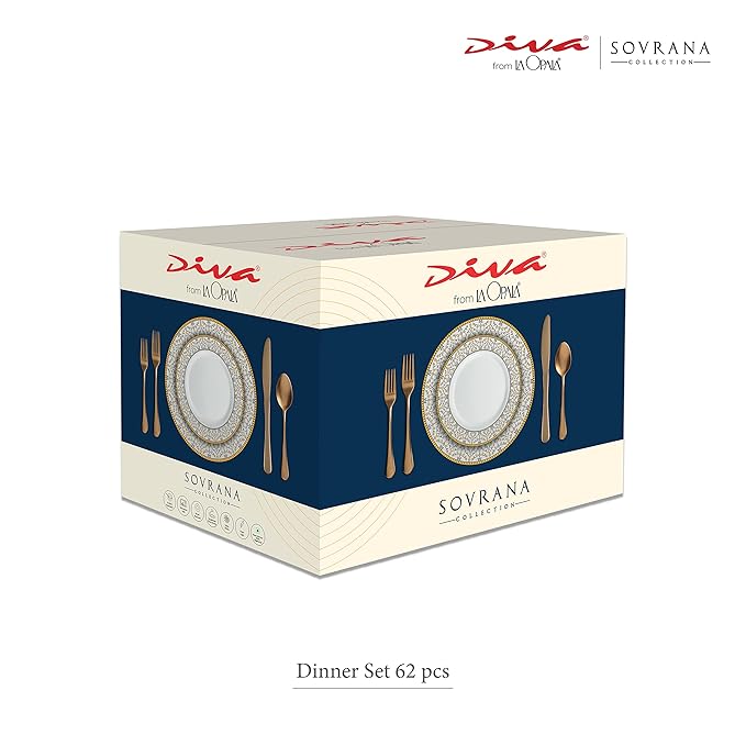 La Opala, Sovrana Collection, Opal Glass Traditional Dinner Set 62 Pcs, Persian Grey, White