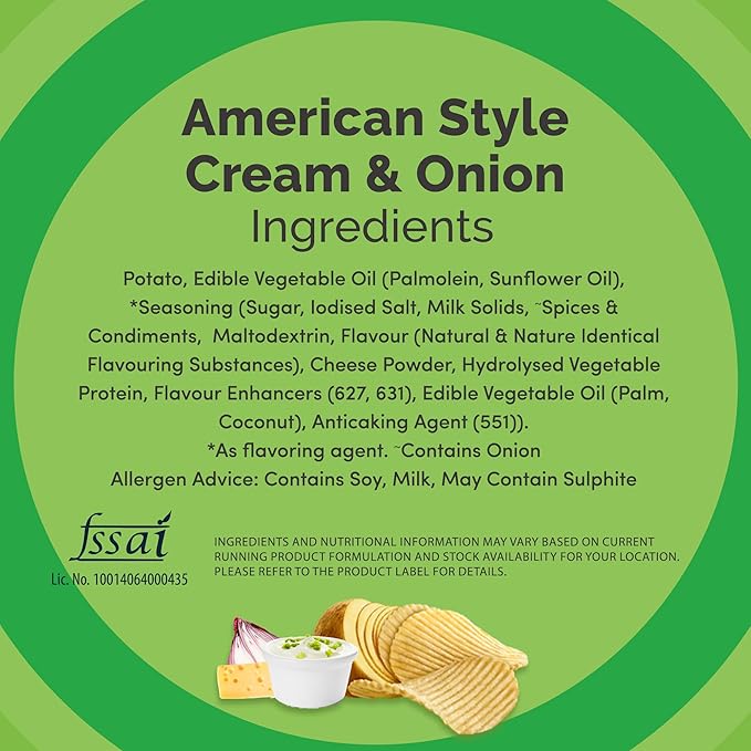 • DELECTABLE FLAVOUR: The American style cream and onion chips are topped with an exquisite blend of delicious flavours