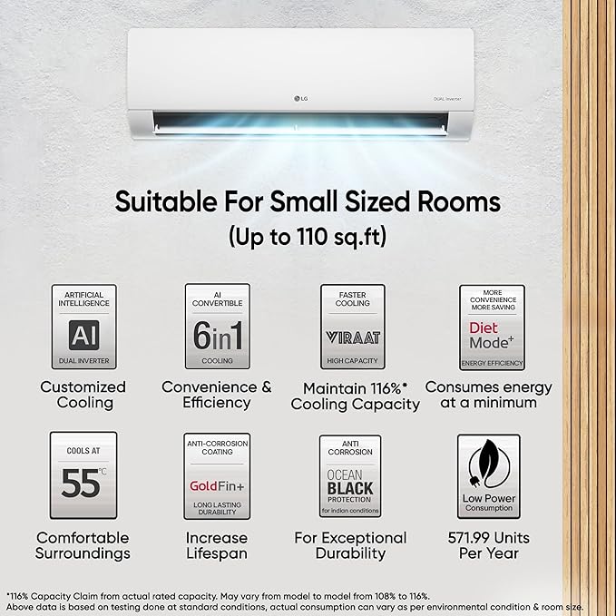 • LG Split AC with Dual inverter compressor: Experience powerful cooling with LG Split AC, featuring an energy-efficient inverter compressor for optimal performance and long-lasting durability.