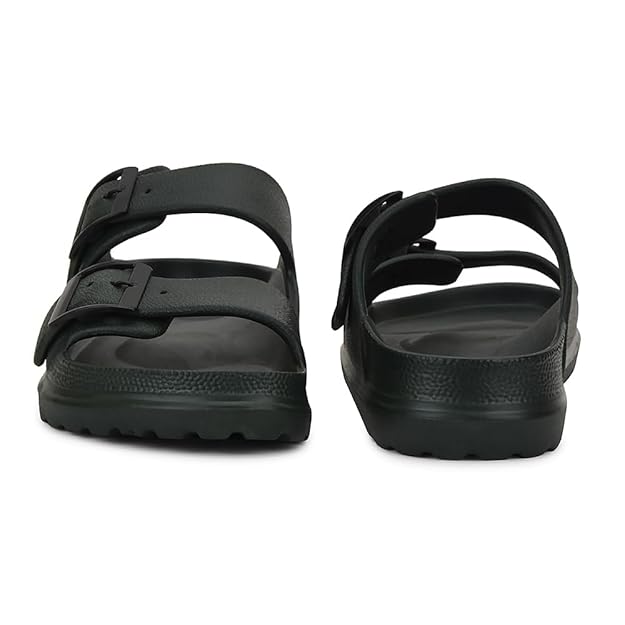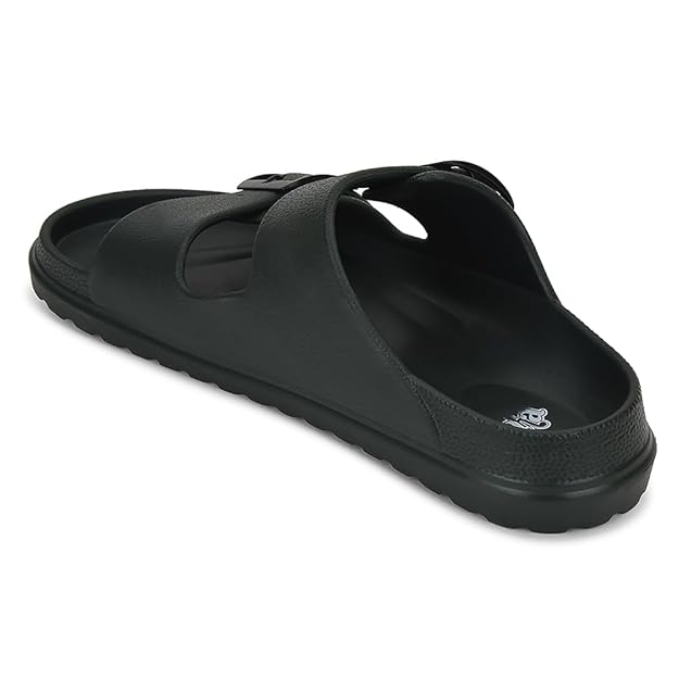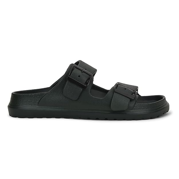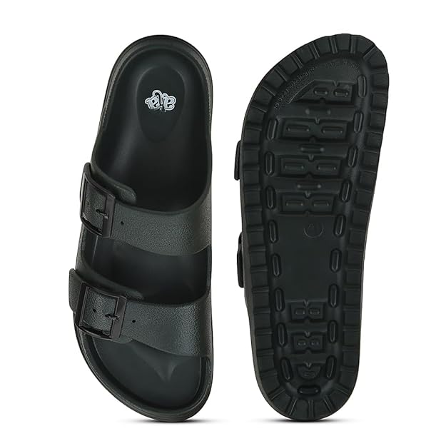Liberty A-HA COMMIT Slippers for Men - Black, Light Grey & Olive Green | Casual Slip-on Flats/Slippers Footwear - Buckle Closure | Casual Outdoor Chappal, Monsoon, Rainy Season Footwear for Man