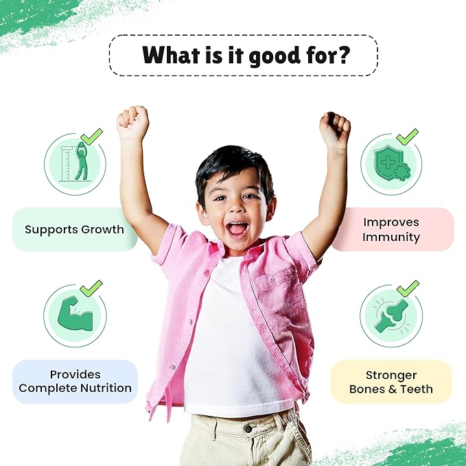 • HEIGHT GROWTH: Supports longer & stronger bones with a blend of Vitamin K, and D, plant-based proteins, and calcium-rich ragi. Additionally, it strengthens bones and helps with your child's healthy growth and development.
