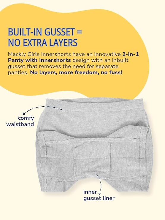 • Soft Cotton Fabric: Made from soft, breathable cotton, Mackly inner shorts keep girls comfortable throughout the day. The durable material ensures they withstand regular wear and washing.