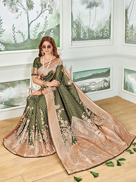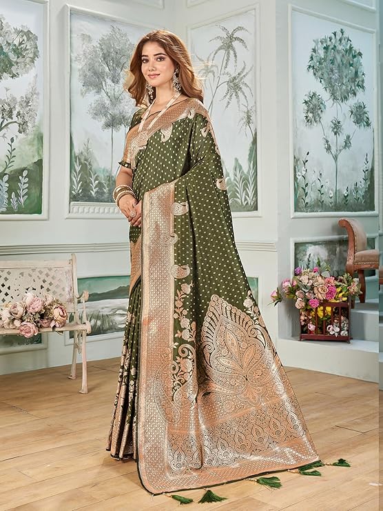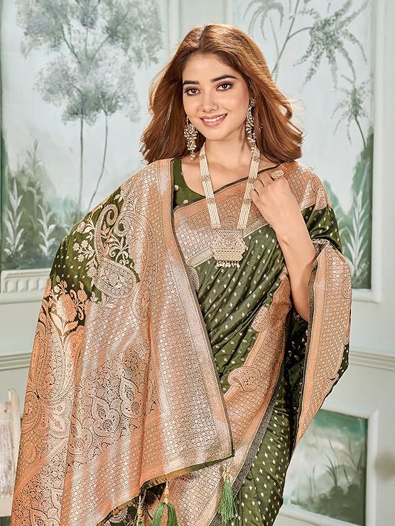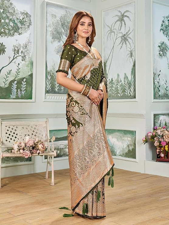 • Saree Details || Saree Fabric :- Silk Blend |Saree Pattern :- Elaborate paisley | Saree Length :- 5.5 Meter | Saree Color : Mehandi