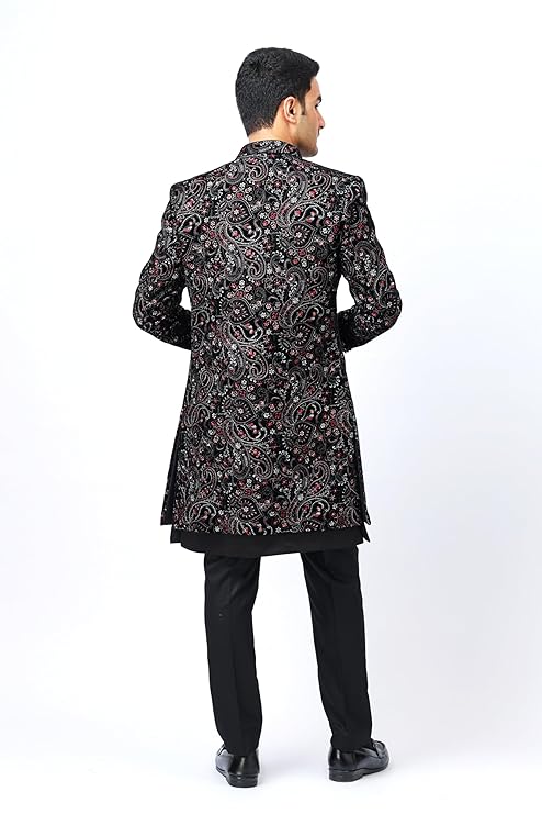 Men?s Indo Western 3 Piece Set ? Multicoloured Embroidered Jacket with Black Inner and Trousers