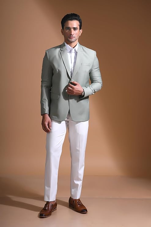 Men’s Solid Single-Breasted Blazer | Tailored Fit | Notched Lapel | Double Button Closure | Full Sleeves | Formal