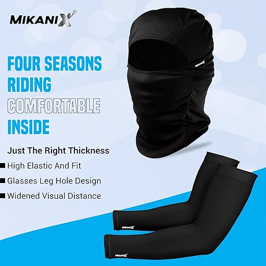 MIKANIX Unisex Full Face Mask | Balaclava Black + Hand Protective Syntetic Arm Sleeve for Bikers Riders, Cyclists and Outdoor Workers to Protect from Dust and UV Rays
